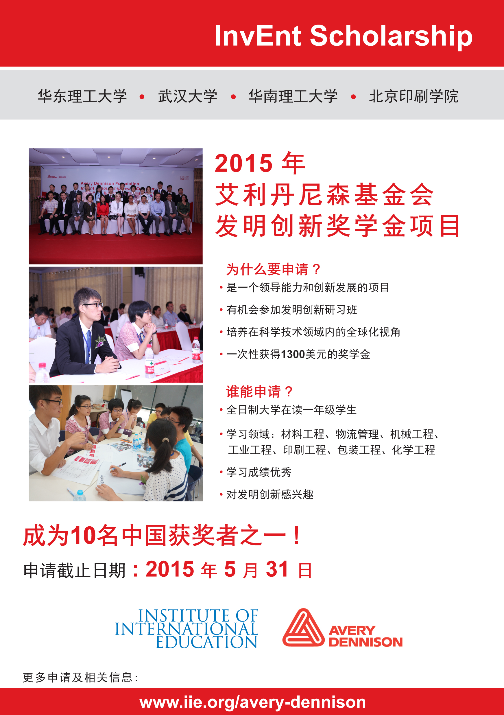2015年艾利发明创新奖学金评选工作已经开始。请同学们踊跃报名!具体要求请看附件: