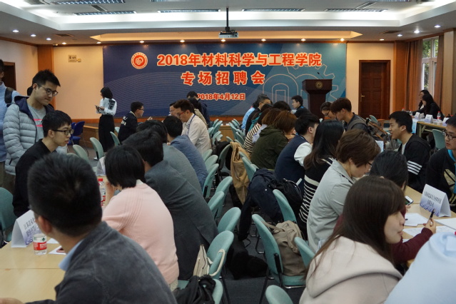 学工委的精心筹备下,材料行业专场招聘会在逸夫楼演讲厅举行。