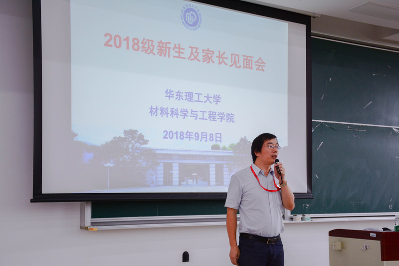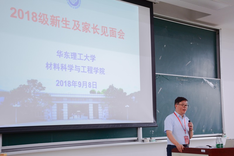 随后,李春忠向新生和家长介绍了华东理工大学的历史沿革和学院的发展概况,并重点就学院的教学科研情况、国际交流、学生工作、奖助和就业等工作进行了讲解。习近平总书记在北大师生座谈会上提出:青年人一是要爱国,忠于祖国,忠于人民;二是要励志,立鸿鹄志,做奋斗者;三是要求真,求真学问,练真本领;四是要力行,知行合一,做实干家。对此,李春忠从求知和励志等方面,对新生提出了几点建议:实现角色转变、充分认识大学、了解材料学科、明确大学目标、践行笃志而行实践原则。