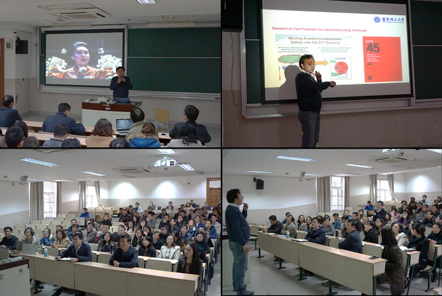 专业特点和可能遇到的实际问题,对实验室防火防爆、化学品安全、辐射安全、生物安全、实验技术安全等方面知识进行系统全面的介绍,并对实验室存在的常见问题及处理方法进行了举例说明,包括气瓶安全放置、易制毒药品的管理、化学药品的摆放及处理、压力容器的安全使用等。与会教师纷纷表示:不听不知道,一听吓一跳。原来实验危险潜藏在身边,今后一定要把安全规范操作牢记于心。通过此次专题讲座,大家学习到了如何防范实验室中的危险因素以及如何采取应急措施,收获颇丰。