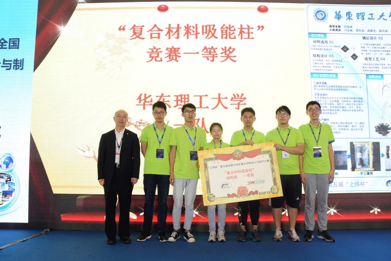 参赛作品性能优势明显。同济大学航空航天与力学学院专家、大赛组委会董国华老师在颁奖大会上点评到:铺层设计、制作工艺对产品的性能影响很大;华东理工大学参赛队伍制作的吸能柱内外表面光滑无缺陷,在满足比赛题目复杂要求的前提下,能够将比吸能做到111.3 J/g,难能可贵。