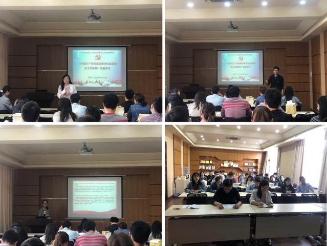 于4月29日在实验一楼第一会议室举办专题学习会。学院党委书记袁媛、副书记戴诚安、教工、学生党支部支委参加培训。会议由专职组织员鲁宁宁主持。