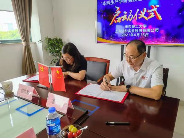 2021年8月18日,华东理工大学与上海强华实业股份有限公司本科生产学研实践基地签约及揭牌仪式成功举行,漕泾镇党委书记陈立俊、漕泾镇副镇长王红亮、漕泾工业区总经理李礼、强华股份总经理周文华、强华股份战略决策咨询顾问韩宝富、强华股份Etch项目负责人周韦军,华东理工国产色情视频
