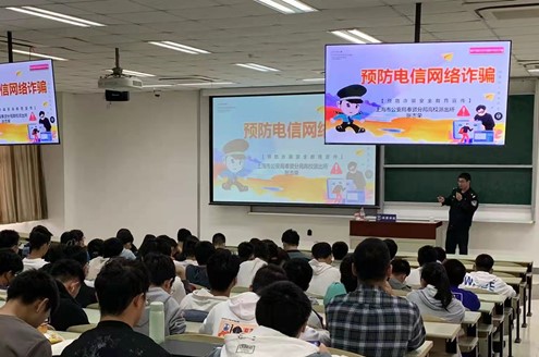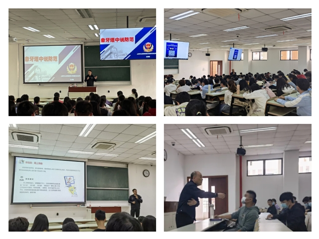 2021级本研新生安全教育讲座在奉贤校区A201、203和205举行。学院邀请党建共建单位上海市公安局奉贤分局高校派出所张志荣、张震和王淑敏三名警官,为学院全体本研新生开展预防诈骗知识宣传讲座。