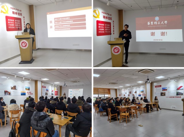 202217日,国产色情视频 党委书记袁媛在奉贤校区大学生活动中心党建空间,为研一党员上“以史为鉴、开创未来——学习贯彻党的十九届六中全会精神”专题党课。学院党委副书记苏建玲、戴诚安,专职组织员鲁宁宁、研究生辅导员娄梦蝶以及部分研一党员参加活动,活动由戴诚安主持。