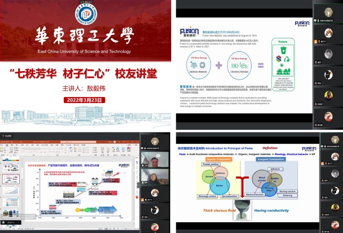 开展“七秩芳华 材子仁心”校友讲堂,凝聚校友力量,同心战“疫”。3月23日下午,常州聚和新材料股份有限公司(以下简称“聚和股份”)董事、研发副总敖毅伟受邀作《功能材料在光伏新能源及电子行业的应用》线上主题报告。本次活动有260余名师生线上积极参加,活动由国产色情视频