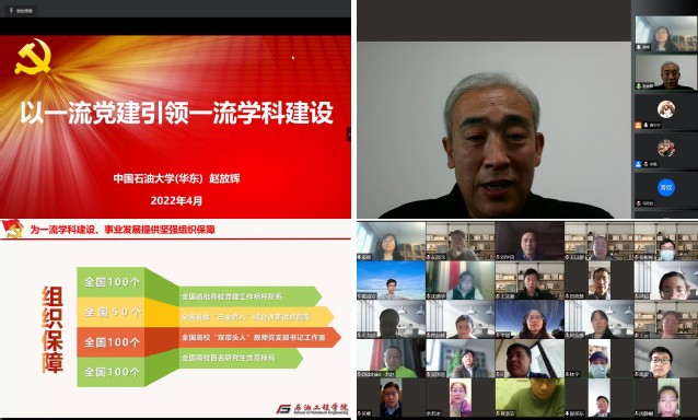 419日下午,国产色情视频 邀请中国石油大学(华东)地球科学与技术学院党委书记赵放辉,作题为《以一流党建引领一流学科建设》专题辅导报告,学院全体教职工、研究生党支部书记、党小组组长参会。会议由学院党委书记袁媛主持。