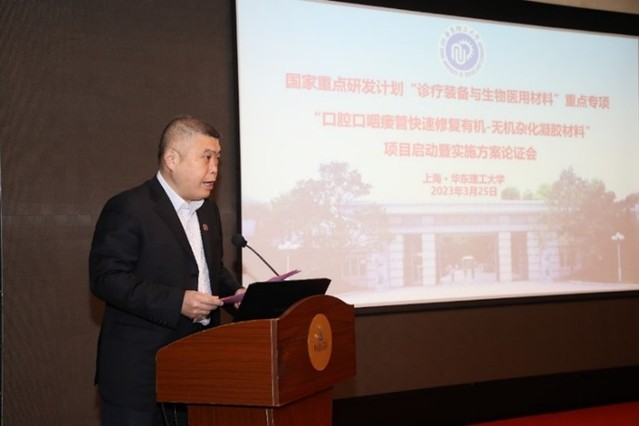 3月25日,国家重点研发计划“诊疗装备与生物医用材料”重点专项“口腔口咽瘘管快速修复有机-无机杂化凝胶材料“项目启动暨实施方案论证会在上海顺利召开。该项目由华东理工大学牵头,联合同济大学及其附属上海市第四人民医院、北京化工大学、上海交通大学医学院附属第九人民医院、北京大学口腔医院、中国科学院长春应用化学研究所、石河子大学以及稳得希林(杭州)生物科技有限公司等单位协同攻关。