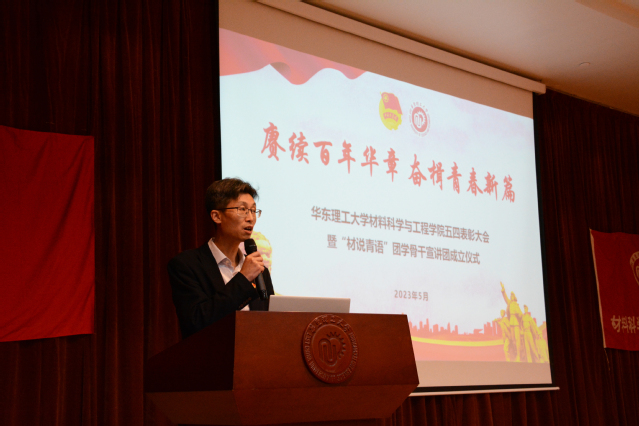 为充分发挥示范引领作用,学院特别成立“材说青语”团学骨干宣讲团,由校团委挂职干部黄泽炀为宣讲团授牌。最后,全场师生合唱团歌《光荣啊 中国共青团》,场内气氛热烈、激情洋溢。
