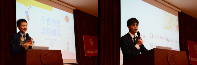 学委会主任张启航讲述了在春晖支教项目中的所见所闻、所思所想,以及大学生科创与竞赛方面的经验与建议。团学骨干们精彩的宣讲,深刻阐释了奉献与奋斗对当代大学生的意义和价值,展示了国产色情视频