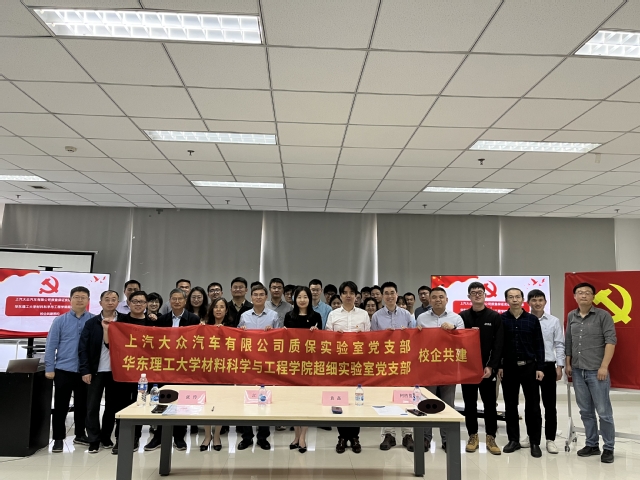 副院长江浩、超细实验室党支部书记张玲、材料实验教学中心副主任杨晓玲、超细实验室党支部成员以及学院师生共26人前往上汽大众有限公司质保实验室开展支部共建活动。