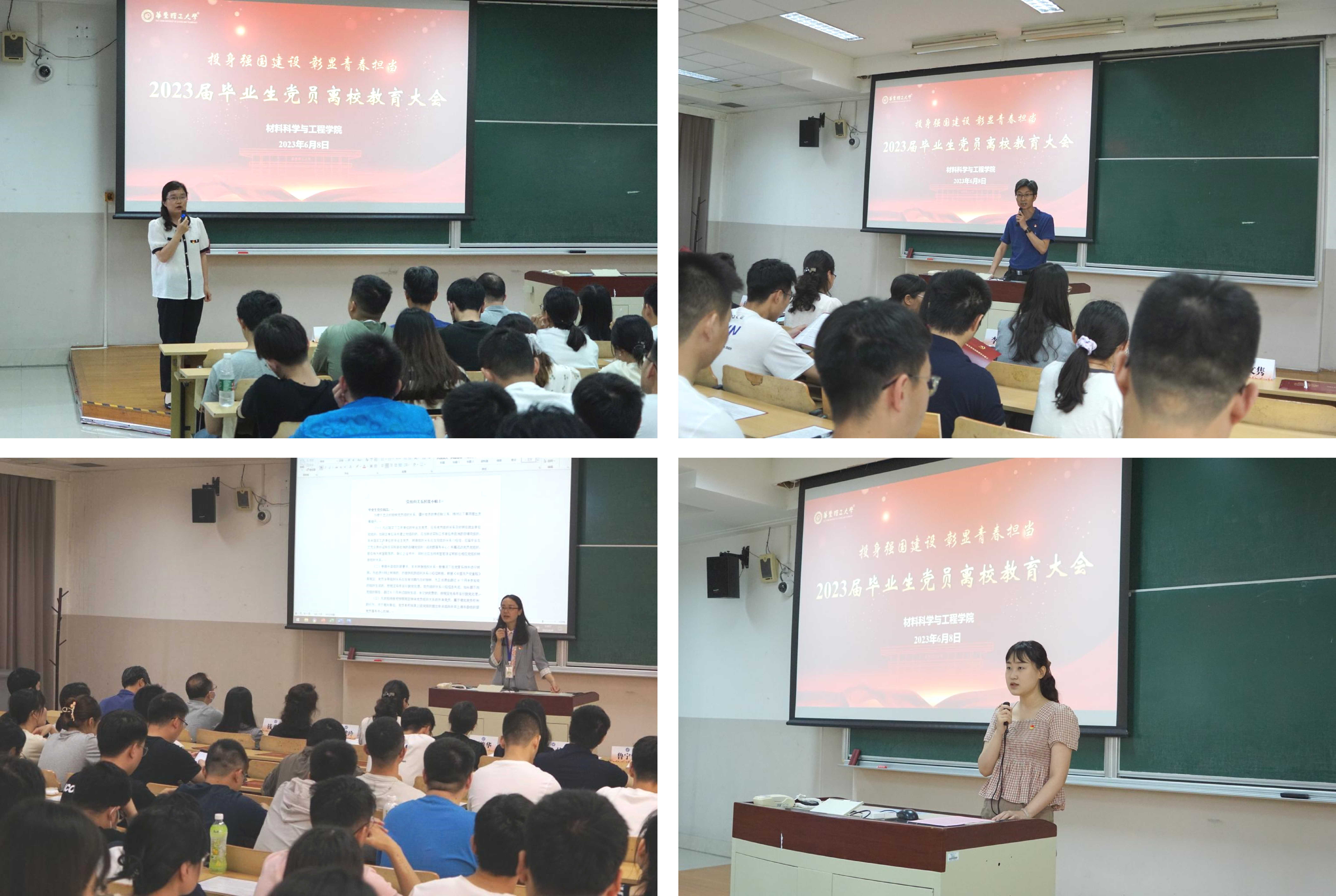 在徐汇校区八教107召开2023届毕业生党员离校教育大会。材料学院党委书记袁媛、党委副书记兼纪委书记苏建玲、党委副书记戴诚安、专职组织员、本研辅导员、党建兼职辅导员及全体毕业生党员参会。会议由戴诚安主持。