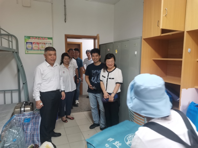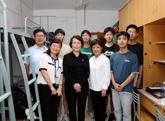 研究生新生报到当天,学校、学院党政领导班子到宿舍看望新生,与学生和家长亲切交流。
