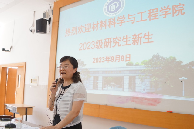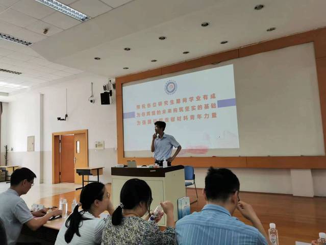 胡彦杰以“勤奋求实,励志明德,携手开启人生新篇章”为题向研究生新同学介绍了学院的发展概况,围绕“知名学府,成就梦想”“一流学科,志存高远”“材学之美,料定天下”“强国有我,青春可为”四个板块进行介绍,逐步加深研究生对于学院及专业的了解。他希望全体研究生新生在求学期间,能够多读书,多交流,多思考,多实践,在新的起点,走好新的研学之路。戴诚安提醒新生,要注意实验室安全、加强身心素质培养、谨防电信诈骗等。
