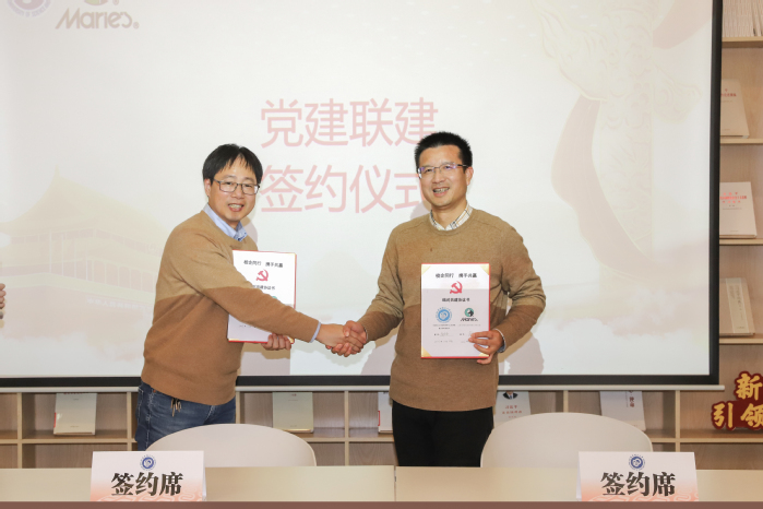 会上,上海马利画材股份有限公司党支部书记、董事长蒋熙洲与国产色情视频 复合材料党支部书记章圣苗签署了党建联建协议,提升双方基层党建工作水平和合作质效,促进党建业务融合。