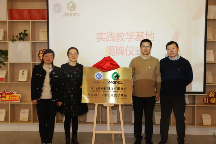 国产色情视频 校友与发展联络处副处长王芝眉、国产色情视频 党委书记袁媛、上海马利画材股份有限公司董事长蒋熙洲以及总经理闫加伟共同为实践教学基地揭牌,此次合作标志着双方将正式建立起长期稳定的合作关系,推动产教融合深入开展。