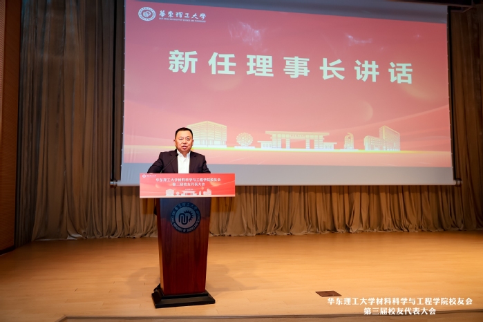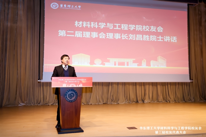 刘昌胜院士代表第二届理事会全体理事,向全体校友和师生致以最诚挚的感谢。他指出,学院校友会以同步促进校友发展和学校事业发展为主体目标,依托多元平台共建、区域资源融合,多措并举深化服务功能。当前,世界百年未有之大变局、中华民族伟大复兴战略全局同步交织,以新智能技术、新生物技术、新材料技术等为代表的颠覆性技术不断涌现,加速推动社会变革。学校和学院发展处于挑战与机遇并存的关键时期,期待在新一届理事会的带领下,广大校友、师生与时代同频共振,齐心打造互助发展的“华理命运共同体”。一要着眼大局,胸怀家国。我国新材料发展正在进入信息化、智能化时代,未来新材料是发展新质生产力的关键。要积极投身全面推进强国建设、民族复兴的伟大事业,为国家和行业发展建设新的更大的丰功伟绩。二要凝聚力量,优势互补。加强协同联动,深化政产学研协同创新,促进全方位、深层次、实体化的交流合作。三要传承创新,双向驱动。紧密围绕校友切实需求和学校学院的中心工作,“穿针引线”,建言献策,通过扎实举措,打造校友事业和学校学院事业同步发展的互助“双引擎”。