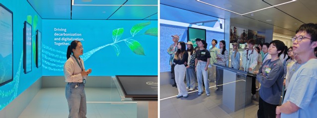在职业导师引领下,学生系统参观了英飞凌科技展厅,通过详实的数据图表与产品实物展示,充分接触和感受到其在汽车功率模块、清洁能源技术、智能用电系统及工业物联网等前沿领域的创新成果与应用场景。