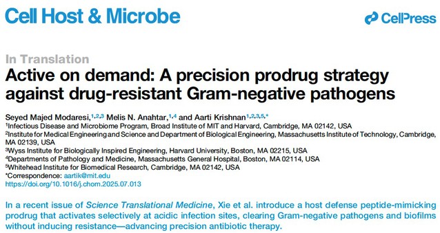 刘润辉教授课题组在抗耐药阴性菌感染治疗领域取得的重要研究成果被哈佛和MIT学者在微生物领域国际顶刊Cell Host & Microbe做专门评述、高度评价(Cell Host & Microbe, 2025, 33(8), 1315-1317, //doi.org/10.1016/j.chom.2025.07.013)。