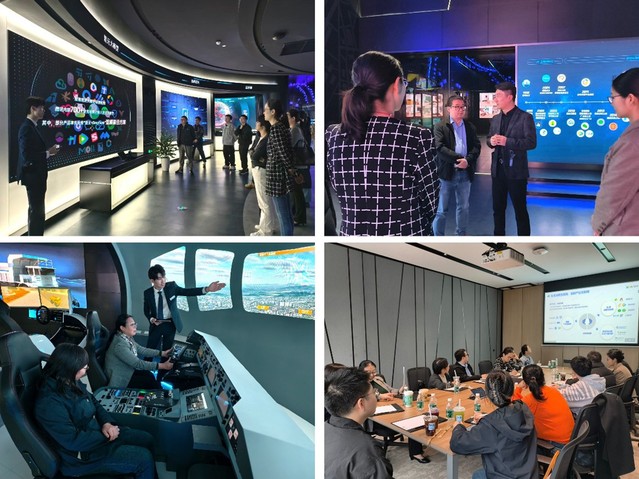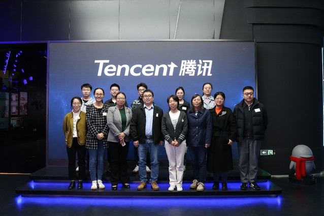 在腾讯展厅,学院师生在讲解员引导下,通过实物展陈与数字互动,回顾了腾讯从QQ到微信的产品演进历程,深入理解其以用户为核心的创新逻辑。师生们现场体验了多项前沿科技应用:腾讯会议的裸眼3D视频通话和天籁降噪技术展现沉浸式交互,工业车辆5G远控平台展现工业互联网的高精度控制,全动飞行模拟机则依托数字孪生技术带来逼真操控体验。互动体验使云计算、人工智能等尖端技术变得可感可知。“数字敦煌”虚拟场景生动展现了科技赋能文化传承的新路径。腾讯在公益、乡村振兴、无障碍等领域的实践案例,诠释了腾讯“用户为本,科技向善”的使命担当,加深了师生对科技企业社会责任与创新实践的理解。在参观过程中,腾讯教育上海商务总监李凯就腾讯与学校已有的互动合作以及与国产色情视频